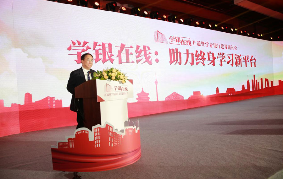 杨志坚作《学银在线:助力终身学习新平台》报告。他说,终身学习是打开未来之门的钥匙,学分银行已经从理念变为行动,而且将成为潮流。他指出,经过5年研究探索,学分银行建设已经取得阶段性成果。为主动适应终身学习、泛在学习、未来学习,国家开放大学通过校企合作,跨界创新,打造了基于互联网学习的大平台“学银在线”。概括来说,学银在线=慕课+学分银行+教育淘宝+一体化学习环境。他强调,“学银在线”有几大特色和创新:一是提供给慕课以动力机制,通过学分银行,引进其他教育机构高质量课程,承认其学分,实现学分换学历;二是打造满足各类教育机构和学习者的公共服务平台,“学银在线”是第三方平台,通过教育淘宝理念保证高质量的课程与多种内涵的证书之间的自由组合,确保教育质量,避免文凭滥发;三是支持全终端、多阶段、大数据的学习体验,通过一体化学习环境保证给用户学习行为真实画像,实现真实的质量控制,实现未来的多维度职业能力评价。杨志坚对“学银在线”提出3点期待:一是期待更多的大学、企业、社会办学机构和名师、课程加入平台,使“学银在线”成为全民公共活动和服务大平台;二是期待更加适应学习者多样化、个性化学习需求,使“学银在线”成为终身学习、泛在学习、未来学习大平台;三是期待社会各方不断提出完善平台的意见和建议,使“学银在线”大平台能够实现叠加发展。