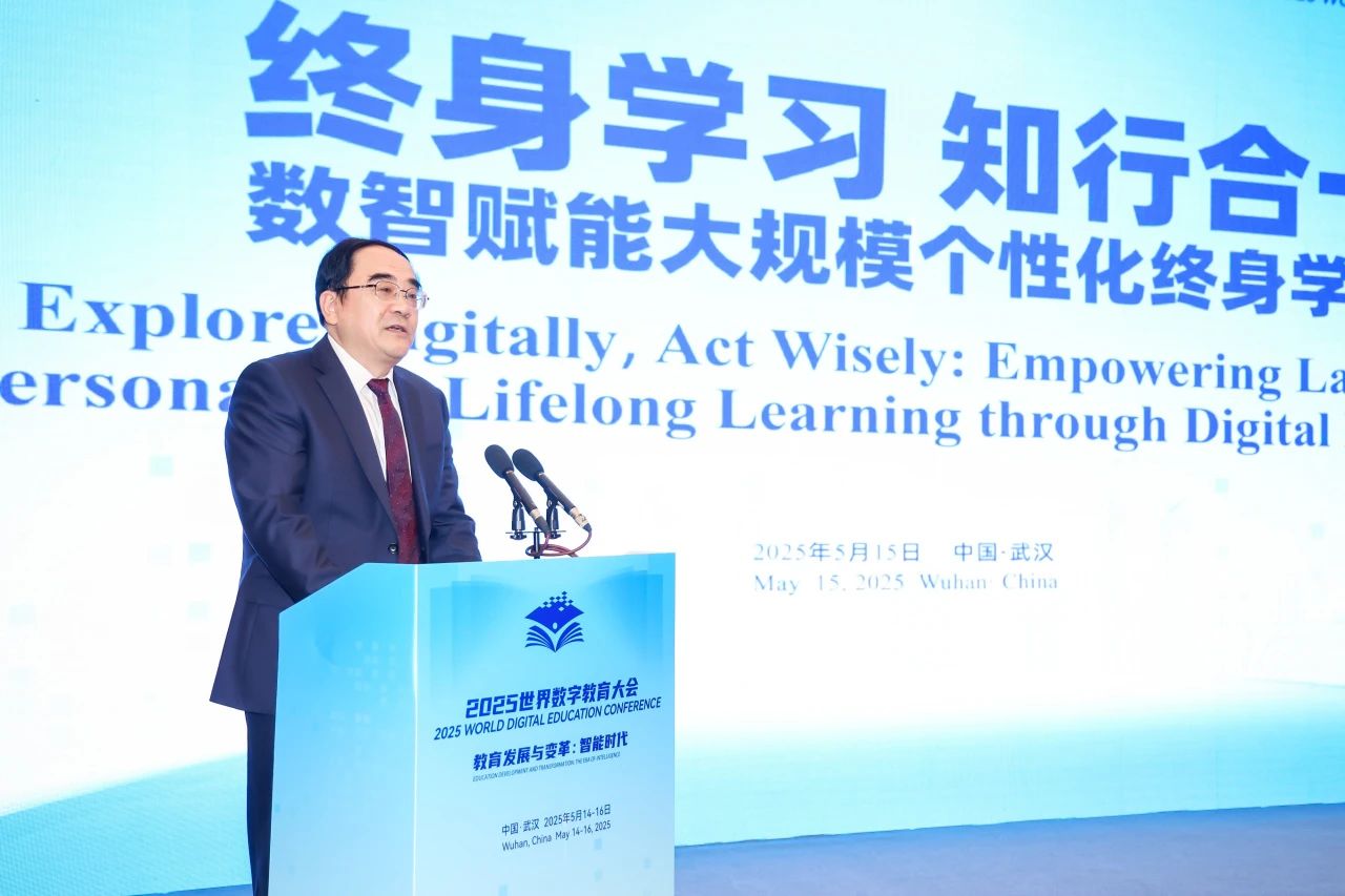 5月15日,2025世界数字教育大会“终身学习 知行合一:数智赋能大规模个性化终身学习”平行会议在湖北省武汉市召开。教育部副部长王光彦出席会议并致辞。