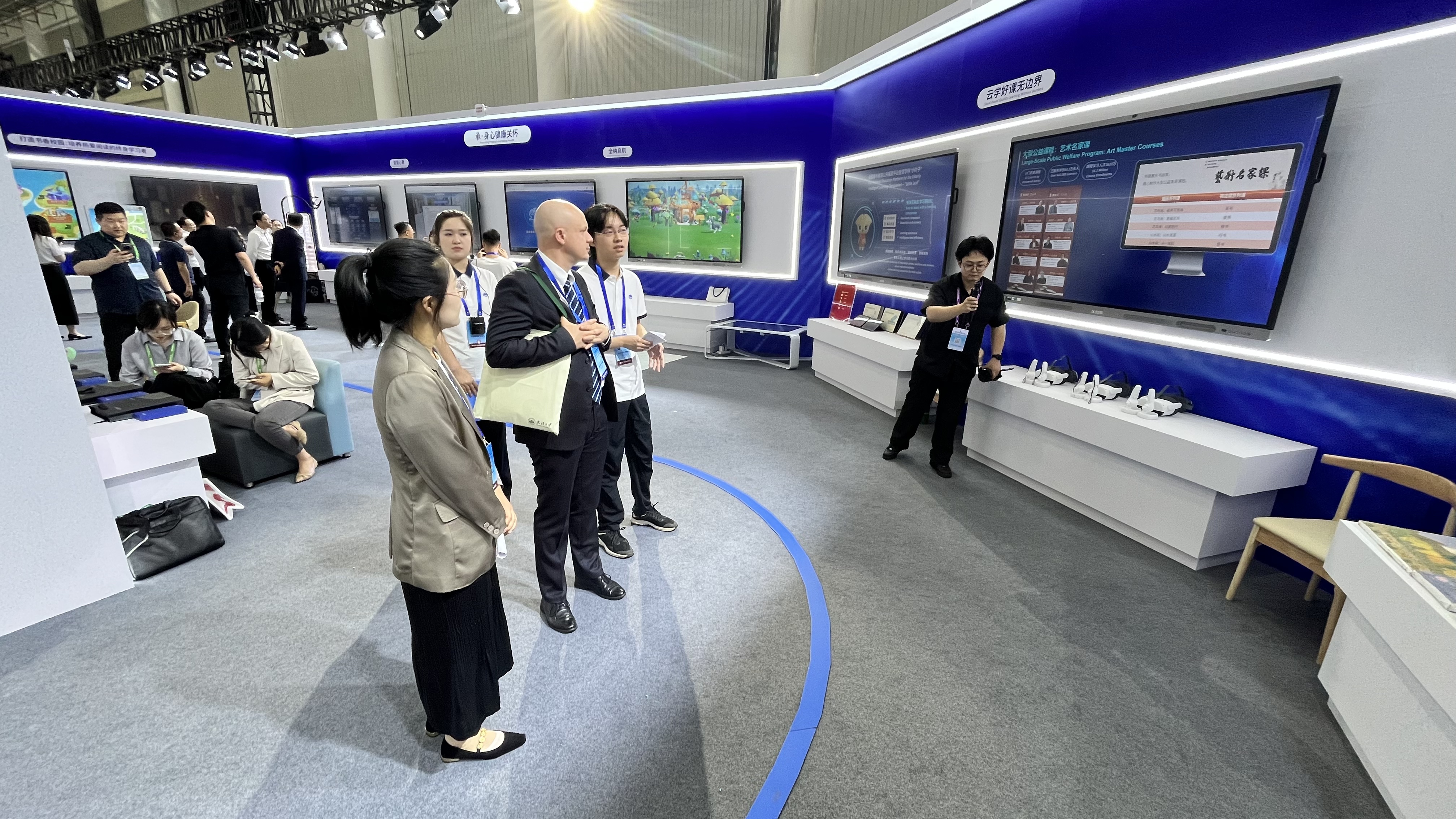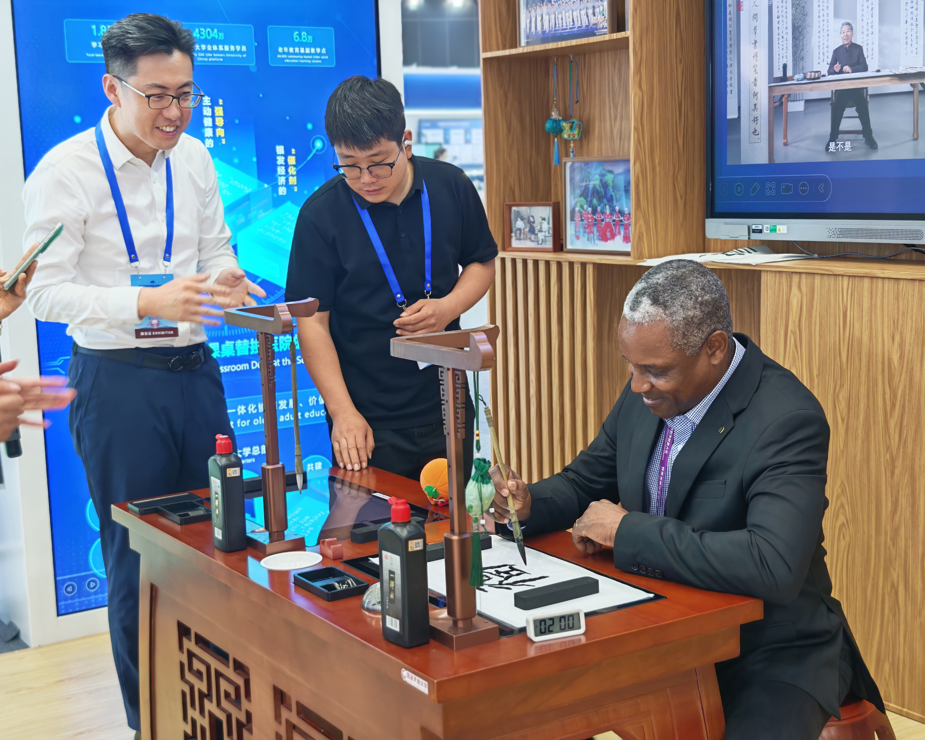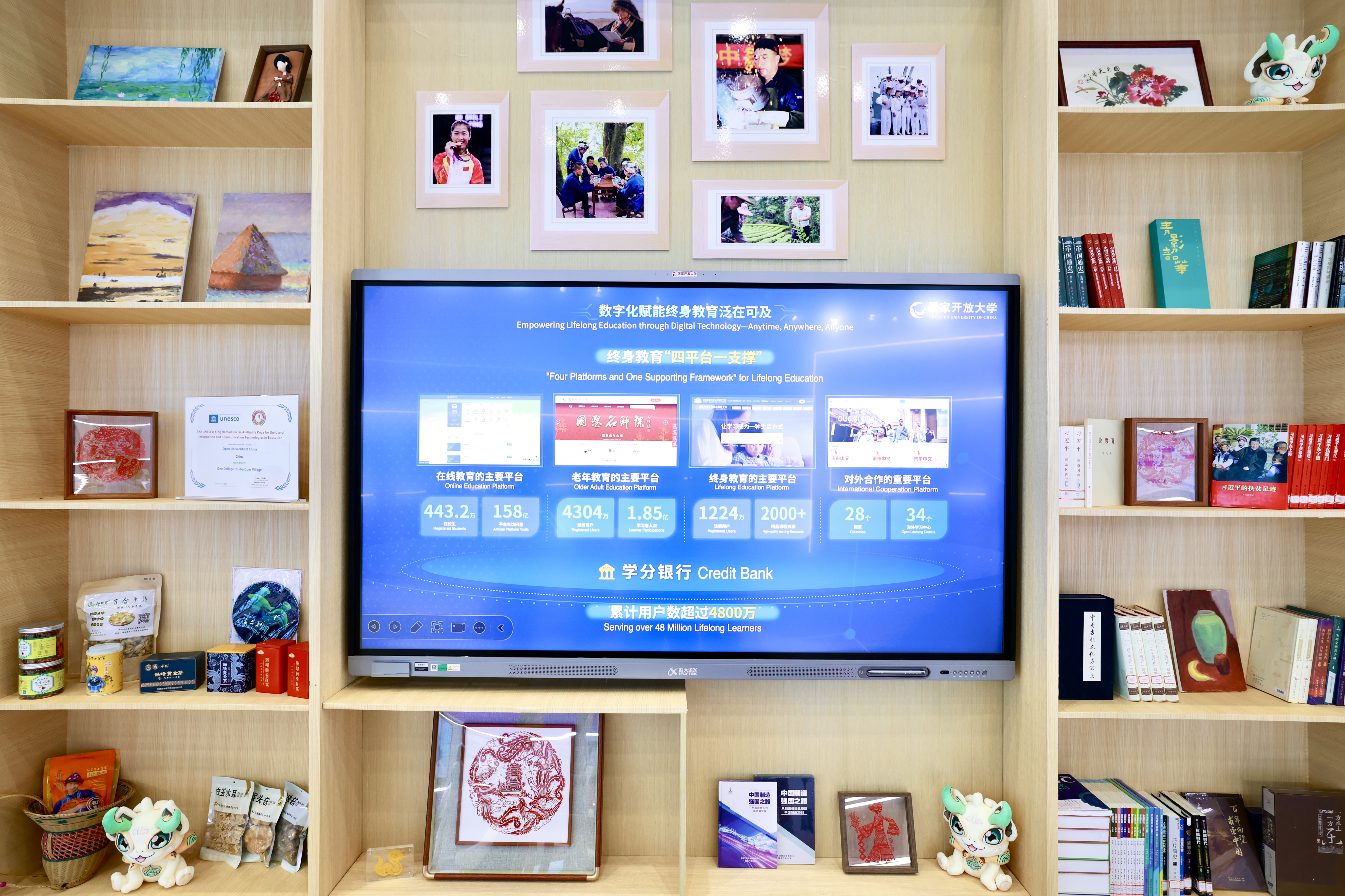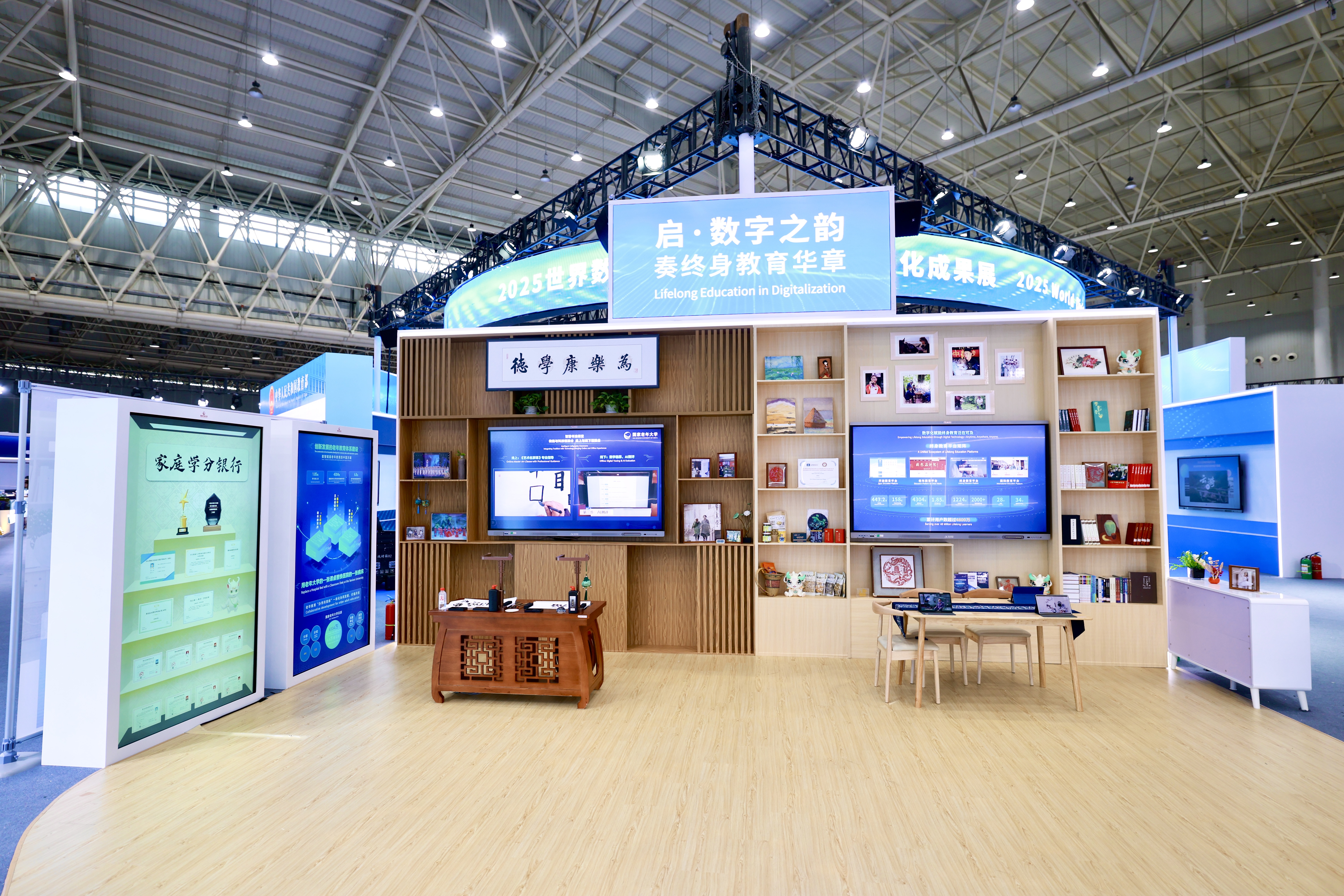在会议期间举办的教育数字化成果展上,国家开放大学通过沉浸式体验家庭学习场景,展现了学校发挥制度优势、体系优势,聚焦“四个服务”,构建的“四平台一支撑”、覆盖全国城乡连接千家万户的终身教育网络,利用数字赋能终身教育泛在可及。