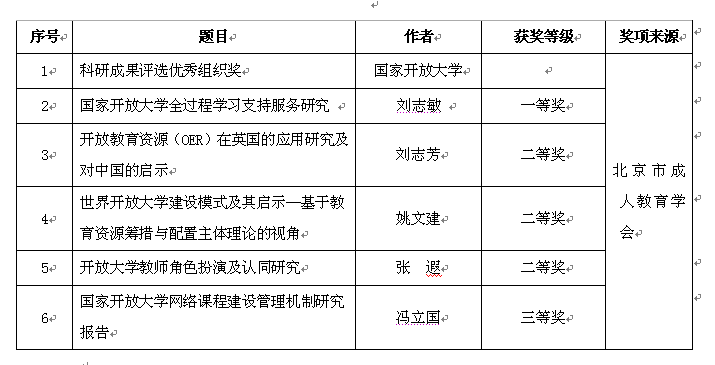 国家开放大学科研成果获北京市成人教育学会优秀科研成果奖