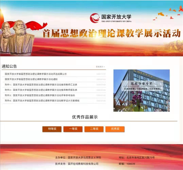 评审专家对本次展示活动给予高度肯定,认为各分部、学院因地制宜开展了丰富多彩又各具特色的教学活动,强化教学设计,突出改革创新,加强团队协作,展示出国家开放大学大规模成人思政教育的鲜明特色。