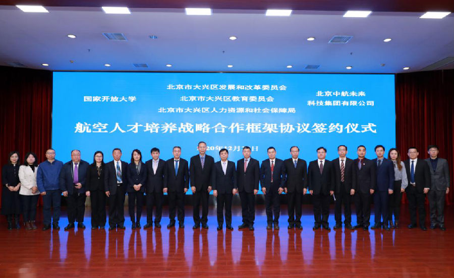 12月25日,国家开放大学与北京市大兴区发展和改革委员会、教育委员会、人力资源和社会保障局、北京中航未来科技集团有限公司在国家开放大学会议中心签署战略合作协议。