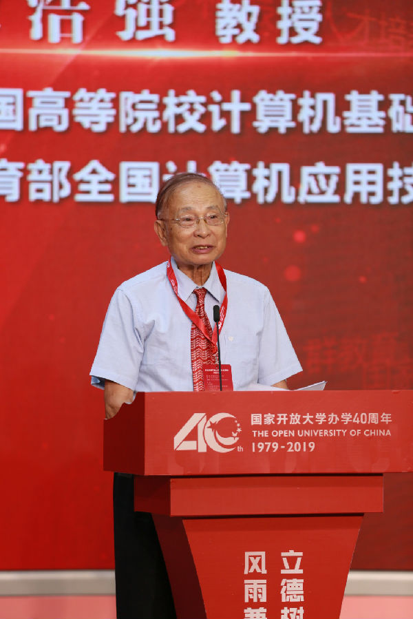 “不仅电大学生,而且社会上许多人都是收看了我讲的‘BASIC语言程序设计’后,踏入计算机的大门的。”谭浩强在大会发言中说到。作为中央广播电视大学第一批主讲教师之一,2019年6月21日,谭浩强教授应邀回校参加国家开放大学办学40周年大会,并在大会上作了发言。