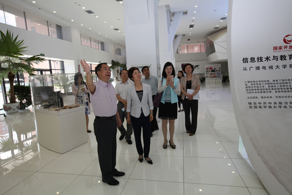签约前,焦扬等一行五人参观了国家开放大学主题校史展,并到信息化部、学生事务与学习支持服务中心、数字图书馆、社会教育与职业培训部、学分银行等部门实地调研。