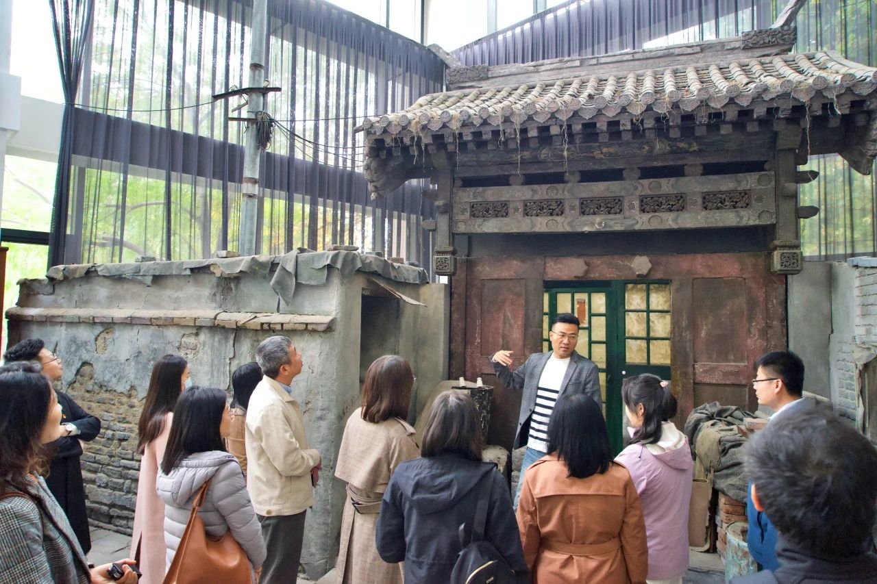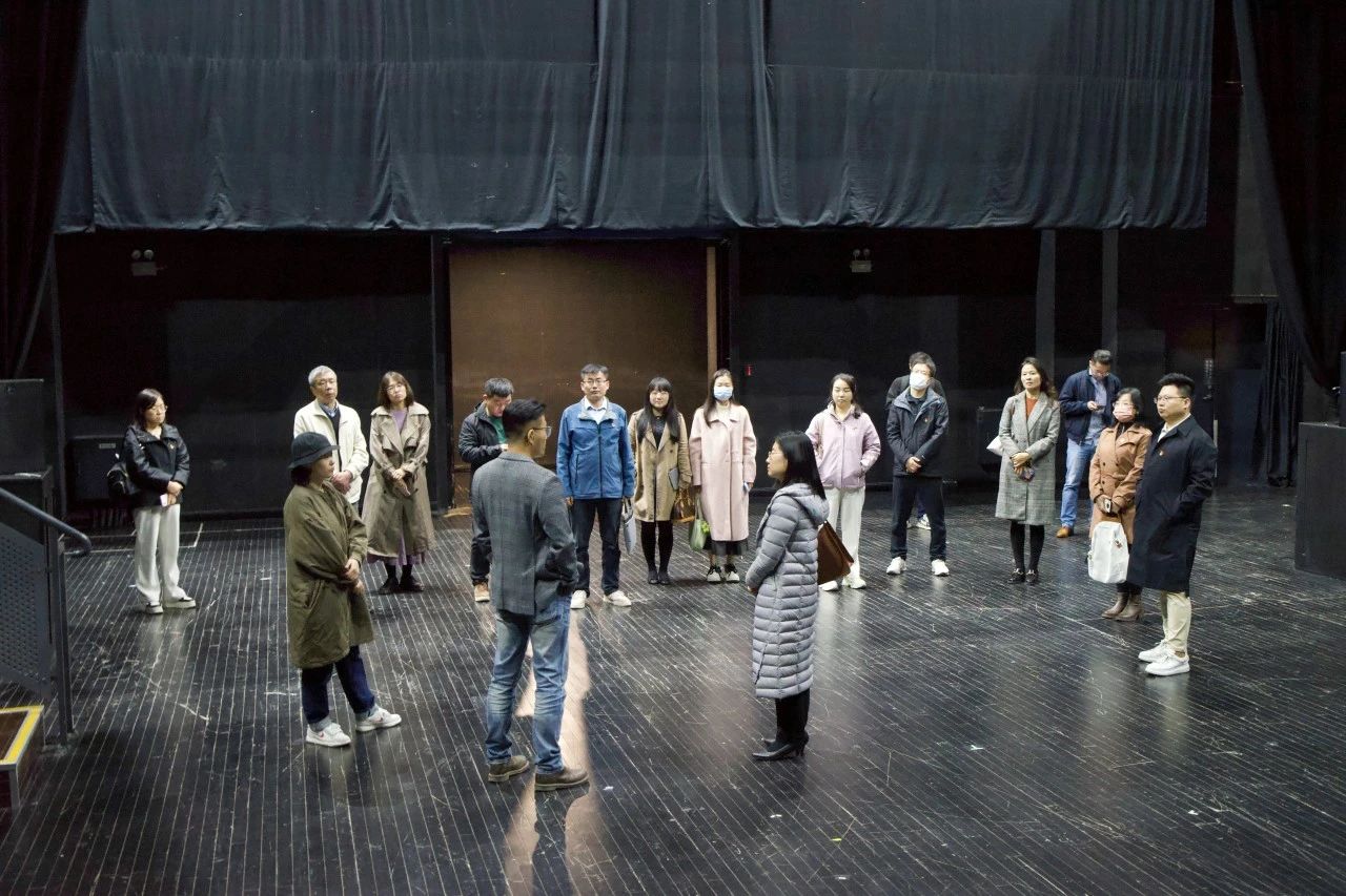 在中央戏剧学院实践教学中心主任周毅的带领下,党员们参访了中央戏剧学院国家级实验教学示范中心、舞美制作实验中心、影视教学楼和图书馆等,这些场所包括为满足不同的实践教学需求设计的剧场、录音室,融合现代科技与传统手工技艺的服装制作实验室、舞美造景,以及能够真实还原电影场景的绿幕影棚等特色教学与资源制作设施。