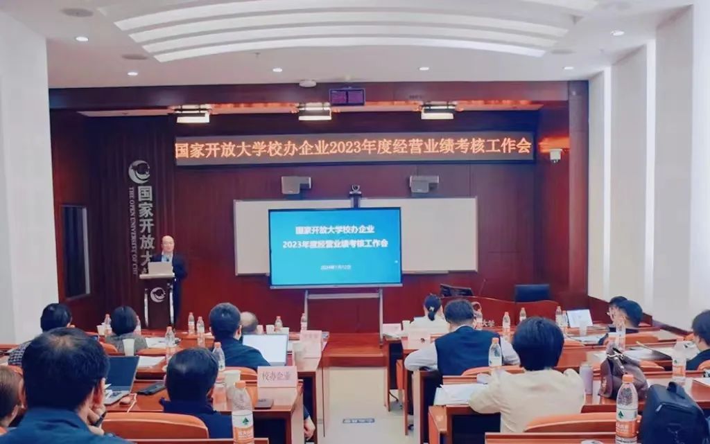 近日,国家开放大学召开校办企业2023年度经营业绩考核会,学校党委副书记徐明军出席会议并讲话。会议由资产管理公司总经理吕伟萍主持。出版传媒集团、国开在线、国开泛在、国开贝和、培训中心等5家校办企业主要负责人作总结汇报。