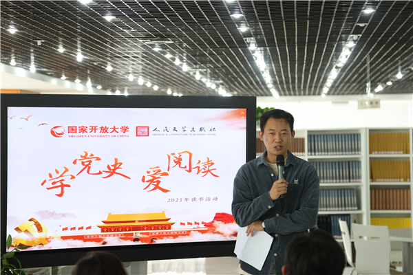 参加本次活动的有国家开放大学党委副书记、工会主席刘臣,人民文学出版社社长助理宋强,人民文学出版社党群工作部主任、工会副主席杨旺,人民文学出版社责任编辑王蔚,国家开放大学工会常务副主席胡星,国家开放大学青委副主任宋庆丰,国家开放大学团委书记叶超,以及学校各分工会及校办企业的代表。活动由学习资源部(数字图书馆)部长、馆长程罡主持。