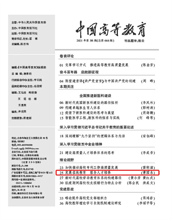 【中国高等教育】曹国永:发展在线教育 服务人才培养