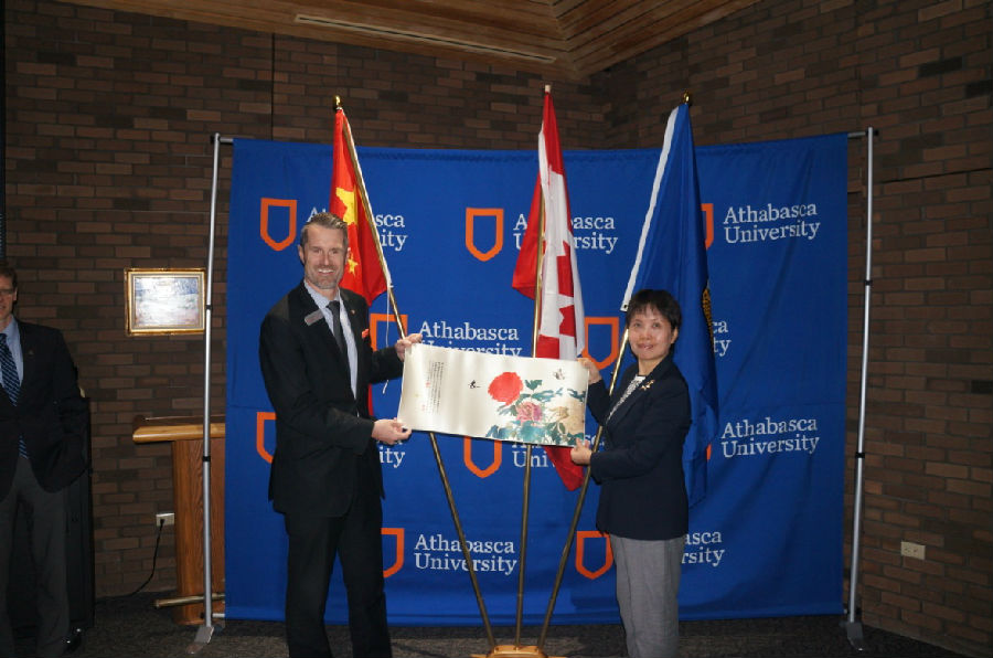 10月22日-26日,围绕“单一模式开放大学的在线课程开发与设计”主题,交流团组全体成员在阿萨巴斯卡大学进行合作交流。10月23日,阿萨巴斯卡大学举行了国家开放大学教师交流项目开班仪式。刘向虹及13位团员,中国驻温哥华总领馆教育组参赞于长学、副领事傅雨南,阿萨巴斯卡大学校长Neil Fassina、教务长兼学术副校长matthewPrineas、副校长Rick Harland参加仪式。