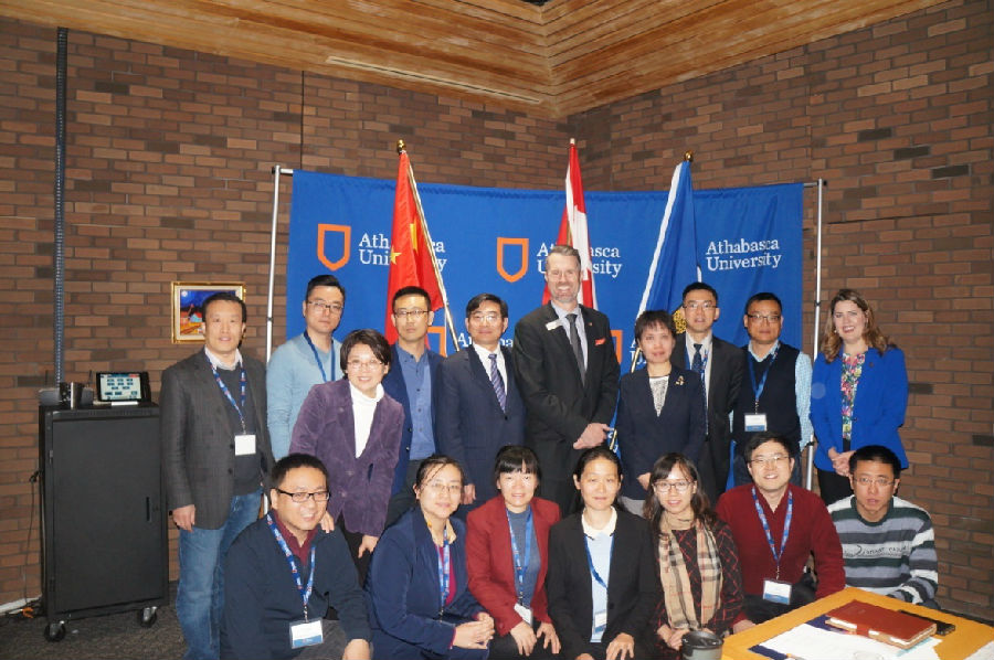 阿萨巴斯卡大学相关人员围绕“iMOOC's-阿萨巴斯卡大学的大规模开放线上课程”“在线与远程教育学”“学生支持服务”“阿萨巴斯卡大学及学生考核”“阿萨巴斯卡大学图书馆”“商学院”“移动学习”“学习分析”“健康科学学院”“人文与社会科学学院”“线上远距离学习中的游戏化”“在线课程开发与设计”等主题与全体团员进行了研讨与交流。全体团员还参观了阿萨巴斯卡大学本部和亚伯塔省远距离学习中心(ADLC)。国家开放大学郑霁鹏副教授介绍了国家开放大学基本情况和英语专业教学开展情况。