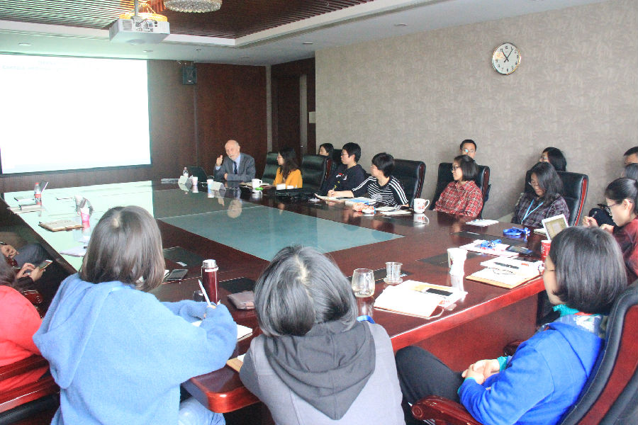 当天下午,杨曼教授参观了超级云教室,并与校领导及相关业务部门代表进行了座谈。国家开放大学副校长杨孝堂、国际合作与交流处处长陈海山、副处长石运志、质量监控与评价中心主任韩仪、教务部副部长孙鸿飞、国际语言文化教学部副部长刘占荣、教育研究院副院长李薇等参加了座谈会,座谈会由陈海山主持。双方就开放大学的组织架构、质量保证、改革发展等共同关心的问题展开深入讨论。杨孝堂建议双方结合中国政府提出的“一带一路”倡议,积极开展教育领域合作。双方对未来两校进一步加强合作达成了共识。