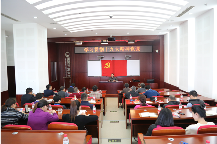 为深入学习贯彻党的十九大精神,12月1日下午,国家开放大学党委书记李凌做了题为《党的十九大是实现中华民族伟大复兴中国梦的历史新起点》的专题党课,党委办公室联合党支部、人事处联合党支部、农林医药教学部党支部和学习支持与教师发展中心党支部的党员参加了学习。