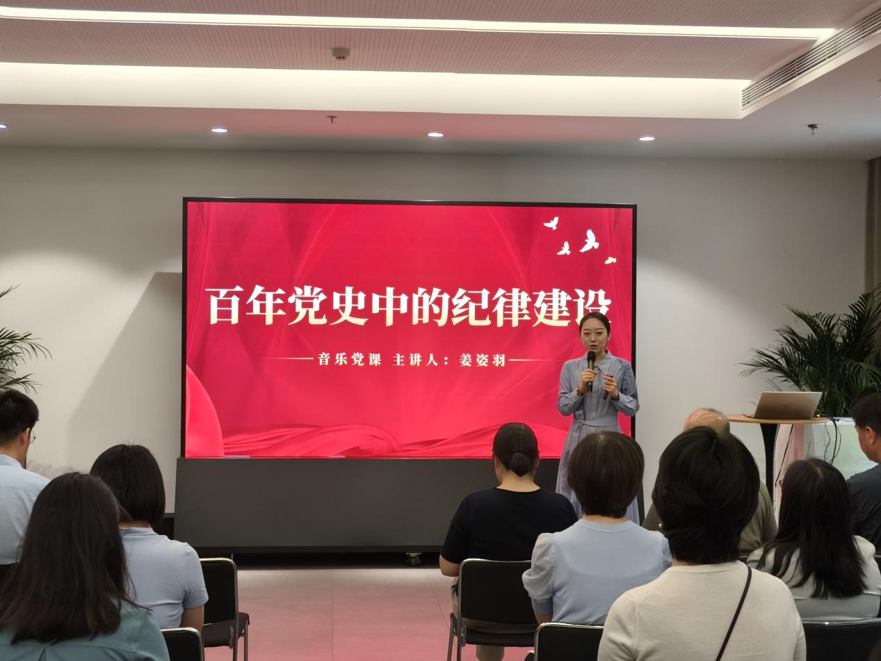 国开贝和党支部党员姜姿羽以“百年党史中的纪律建设”为主题讲授党课。她通过演唱经典红色歌曲的方式,讲述了歌曲背后的历史故事,生动展现了中国共产党在百年奋斗历程中始终坚持严明纪律、勇于自我革命的宝贵品质。
