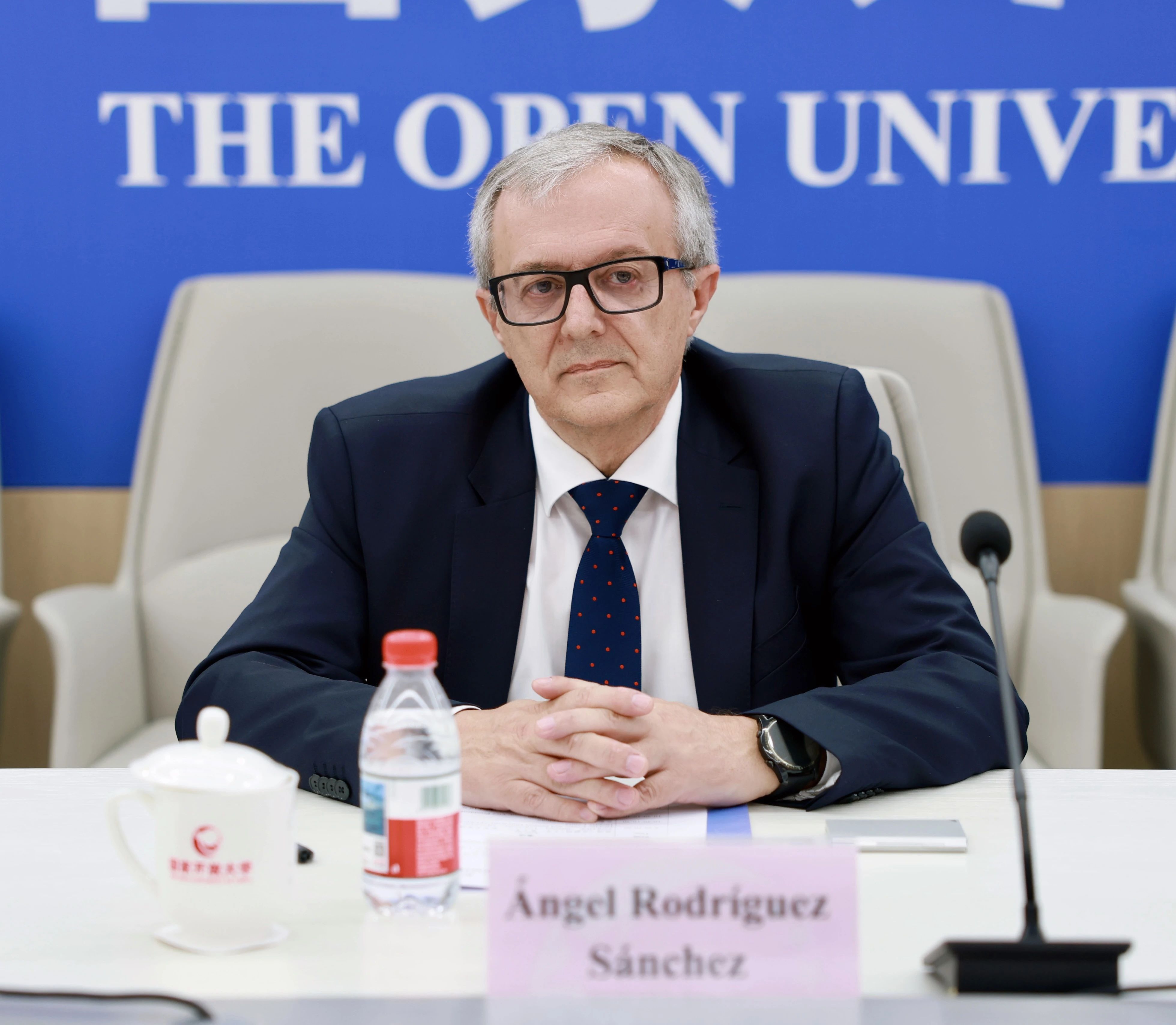 桑切斯介绍了西班牙加利西亚自治区教育、科学、大学和职业培训厅教育与数字创新中心在虚拟仿真教学、教育大数据应用、AI伦理治理等领域的实践与探索,并表示未来愿与国家开放大学在数智技术赋能教育教学等方面持续深化交流,不断增进友谊,共同推动教育公平与质量提升。