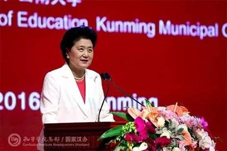 国务院副总理、孔子学院总部理事会主席刘延东出席并发表了大会主旨演讲。她回顾了过去一年孔子学院的建设,并强调在当今时代,构建以合作共赢为核心的新型国际关系,携手打造你中有我、我中有你的人类命运共同体,是世界各国人民共同心声。刘延东还提出4点期望:一是继续深化教师、教材、教学法的“三教”改革创新,充分利用“互联网+”、新媒体等现代科技手段,开展慕课和移动互联网在线教学;二是逐步完善理事会机制,促进合作办学深度融合、强化中方支撑能力建设并研究制定一校一策、一国一策支持办好孔子学院的措施;三是推动孔子学院本土化发展,开放包容,因地制宜;四是要主动服务于“一带一路”建设战略,为中外方企业搭建平台并加强职业技能培训,加强孔子学院地区中心建设,支持区域、国别之间孔子学院建立合作机制,努力惠及各国人民。