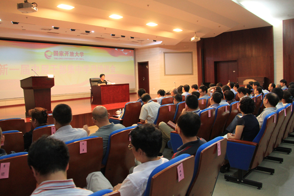 7月21日至25日,国家开放大学对新一届中层干部开展集中培训。培训旨在适应国家开放大学建设、改革和发展面临的新形势、新任务、新挑战、新要求,提高新一届中层干部的政治思想素质、理论水平和业务能力,努力建设一支高素质的干部队伍,为实现科学发展提供坚强的组织保障和人才支持。中纪委驻教育部纪检组组长、教育部党组成员王立英出席会议,就如何加强领导干部党性修养和作风建设提出要求。