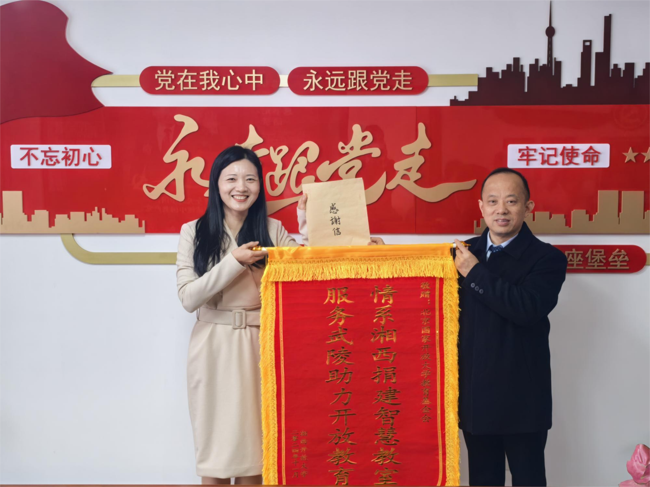 湘西开放大学向国家开放大学教育基金会赠送锦旗及感谢信