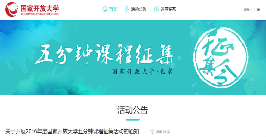 国家开放大学五分钟课程征集网站正式上线