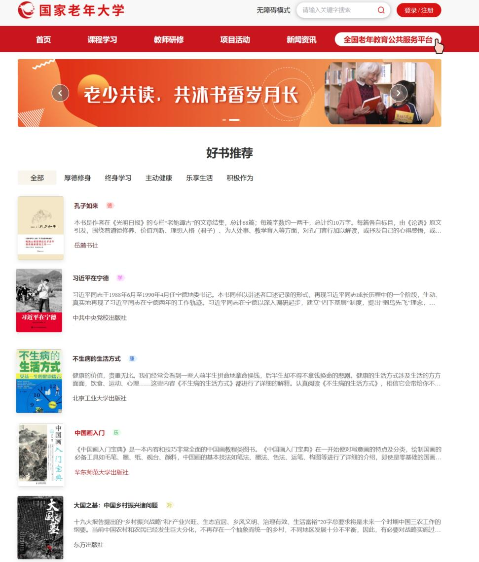 全国老年教育公共服务平台“老少共读 共沐书香岁月长”读书专区