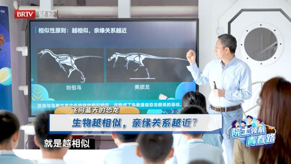 徐星院士是目前世界上发现并命名恐龙最多的科学家,被大家亲切地称为“恐龙院士”。在本次《飞向蓝天的恐龙》讲座中,徐星院士运用生动的语言和丰富的考古证据,系统梳理了恐龙与鸟类之间的深厚渊源。他通过互动问答等多种形式,引导青少年以科学家的视角思考问题。徐星院士还讲述了自己的成长经历,通过真实事例启发青少年探究故事背后的科学道理和底层逻辑,并为青少年写下寄语:
