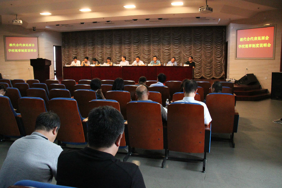 按照学校“两学一做”学习教育实施方案的安排,为了进一步促进学校规章制度的有效落实,增强教职工“讲规矩、有纪律”的意识,在教代会代表见面会后,举办了学校规章制度说明会。纪检监察与审计处处长李睿卿介绍了各部门内部审计、落实监督责任、信访举报等方面的制度,财务与资产管理部副部长胡立端介绍了学校举办各种类型工作会议的经费管理、差旅费报销、政府采购、合同管理等方面的制度,人事处处长郭宏扬介绍了有关人事管理方面的制度。