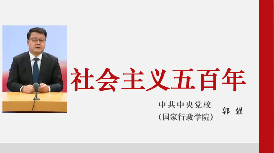 此次课程由中央党校科学社会主义教研部副主任、教授、博导郭强负责讲授,以“社会主义五百年”为主题,回溯了社会主义的发展历程。社会主义的发展经历了从空想到科学,从理论到实践的漫长过程。中国共产党把马克思主义基本原理同中国实际和时代特征结合起来,开创和发展了中国特色社会主义制度,带领中国人民创造了辉煌的历史成就。