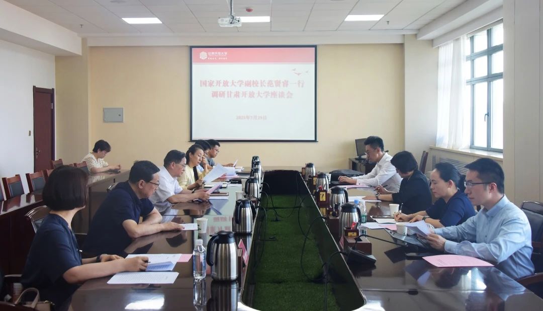 7月29日,国家开放大学(国家老年大学)党委委员、副校长范贤睿赴甘肃开放大学开展实地调研,围绕老年教育、教育数字化建设等主题进行交流座谈。