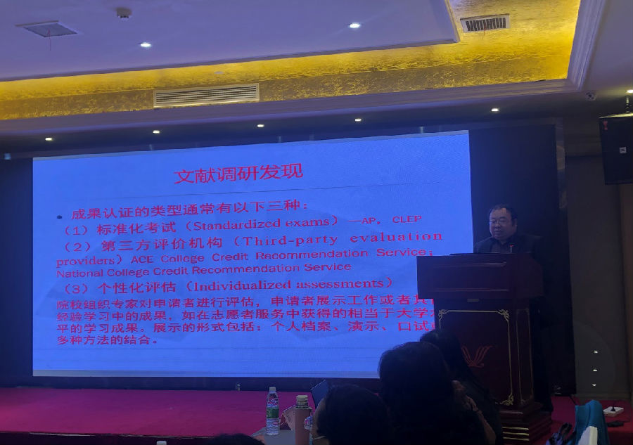 外语教学部教授刘永权对国家开放大学英语等级体系标准构建项目的源起、目标、已完成工作进行了总结,包括已初步梳理成形的等级体系描述、样题等。项目组将进一步与资历框架对标,完善学习成果认证、积累、转换体系。