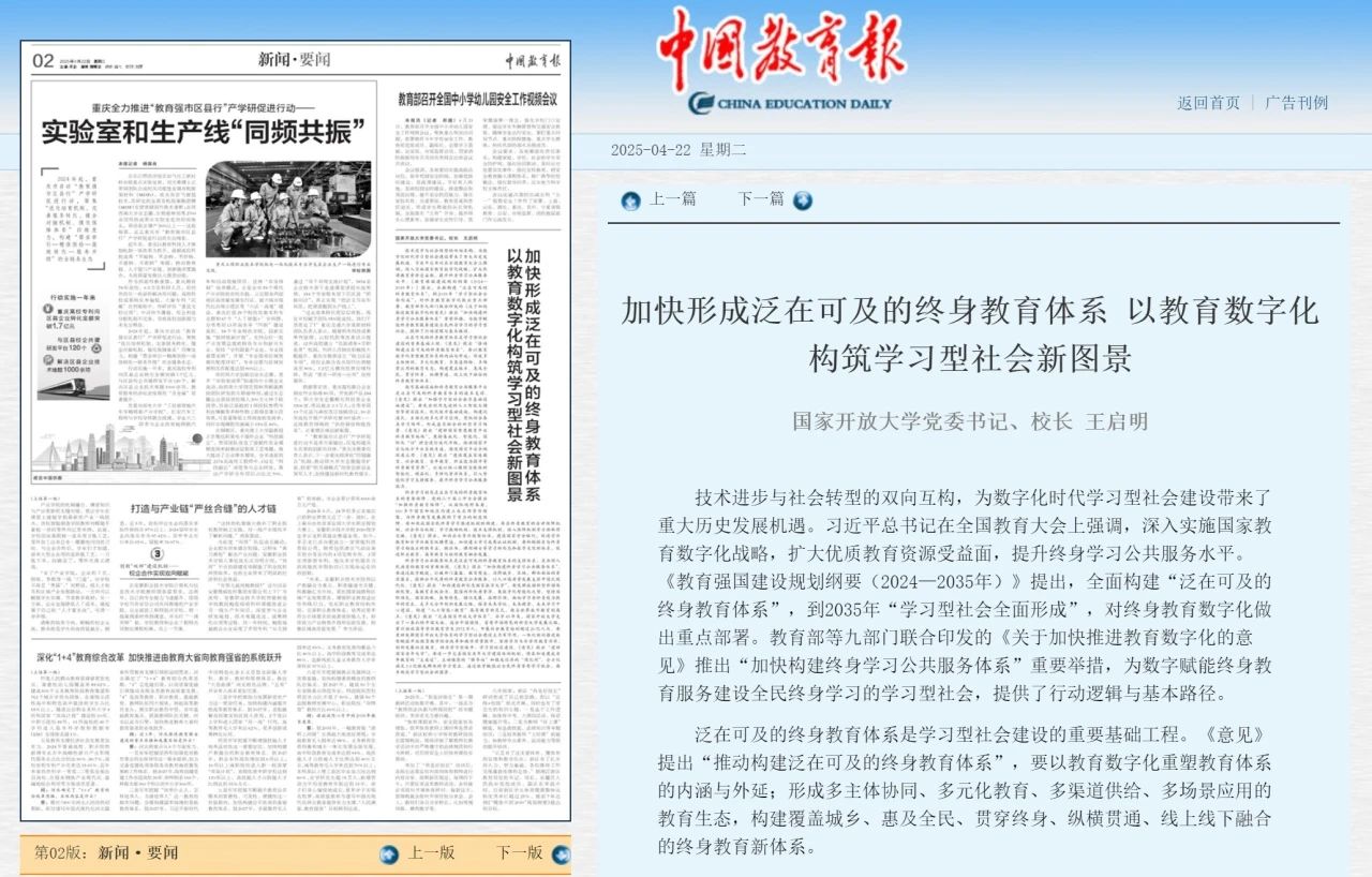 王启明:加快形成泛在可及的终身教育体系 以教育数字化构筑学习型社会新图景