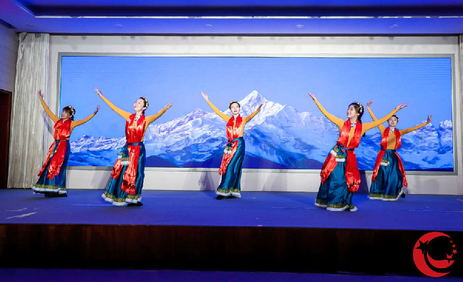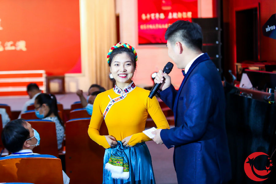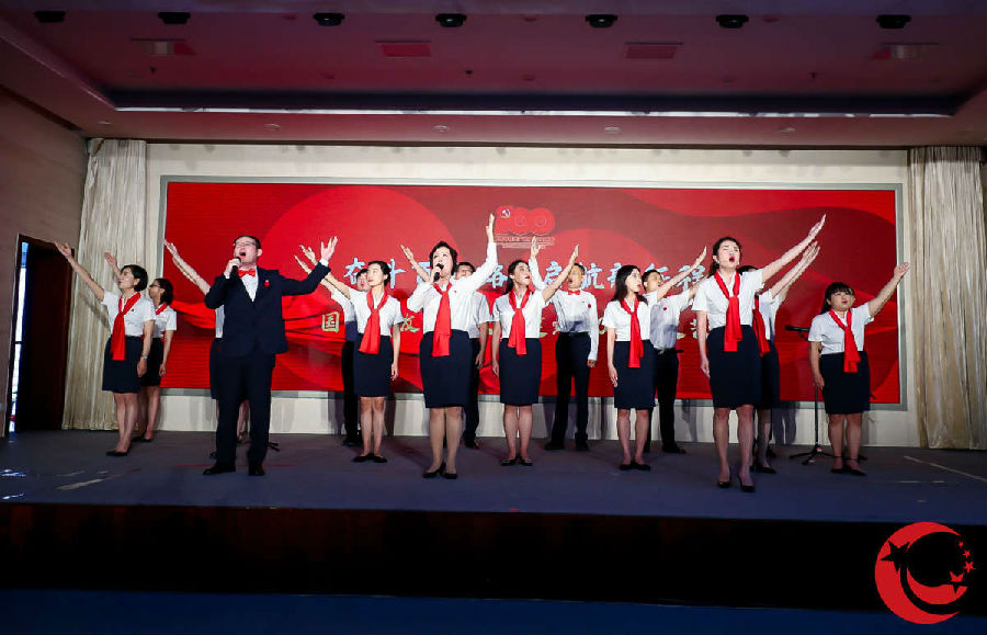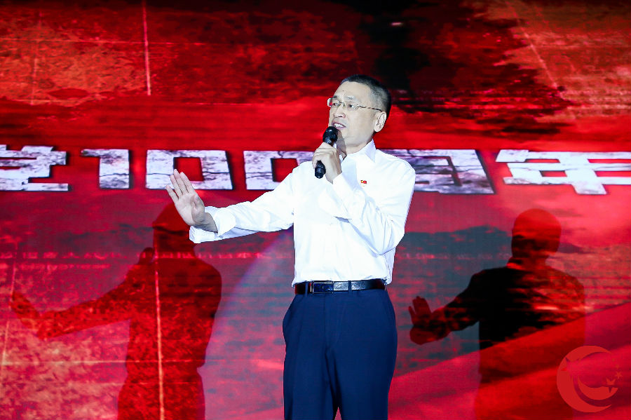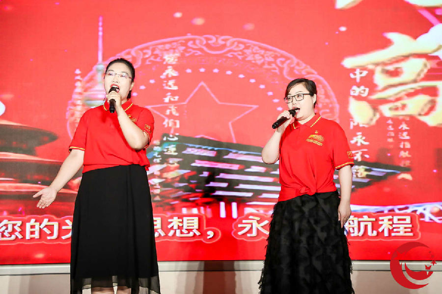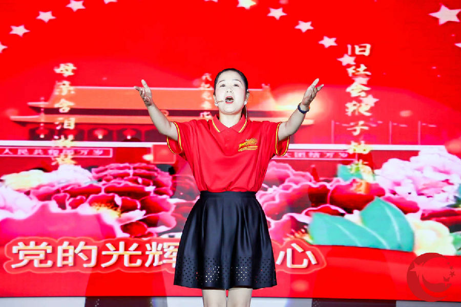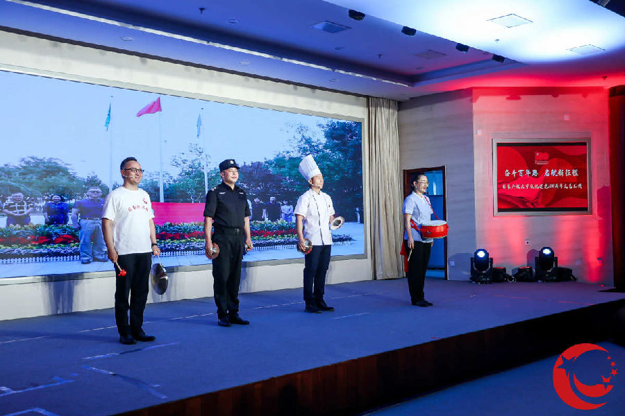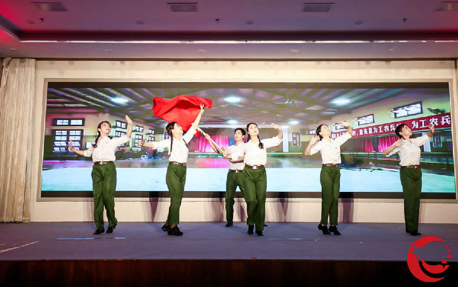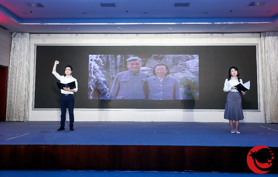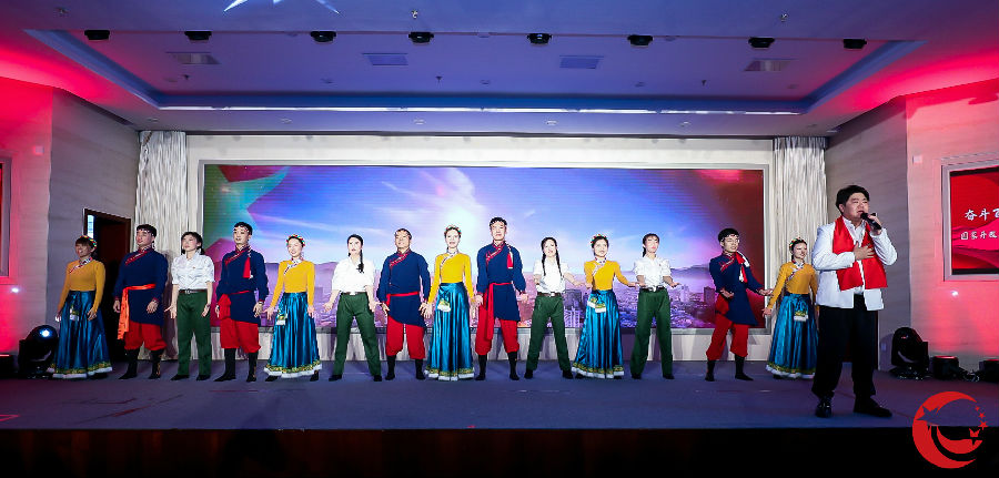 文艺汇演前,面向中国共产党党旗,党委书记荆德刚举起右拳,带领党员同志重温入党誓词。党委副书记刘臣主持宣誓仪式。