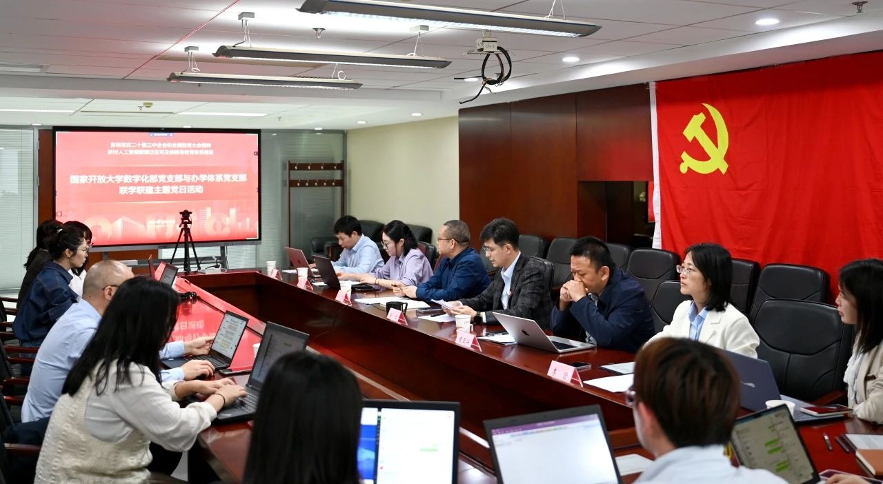 为深入贯彻党的二十届三中全会和全国教育大会精神,10月17日,国家开放大学数字化部党支部联合国开在线党支部及办学体系信息化战线的基层党支部开展联学联建主题党日活动,研讨人工智能赋能泛在可及的终身教育体系建设。国家开放大学数字化部党支部书记程罡、教务部党支部书记古小华、工程中心党支部书记李静、国开在线党支部书记袁亚兴等出席活动,活动以线上线下相结合的方式开展,来自28家地方开放大学的31个党支部,共150余名党员和群众参加。活动由数字化部副部长贺媛婧主持。