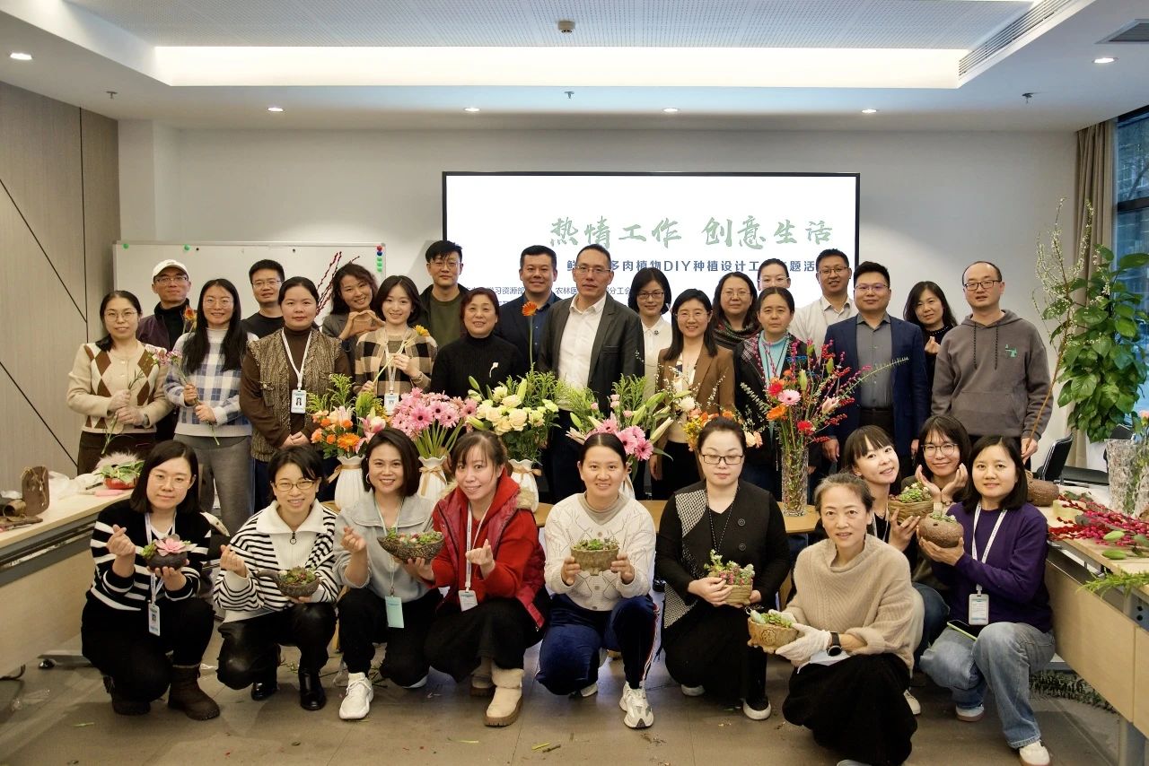 为深入学习习近平总书记关于工人阶级和工会工作的重要论述,贯彻落实中国工会十八大精神,充分发挥党联系群众的桥梁纽带作用,增进学校教职工“以热情工作建设国开、以创意生活营造国开”的饱满精神,为学校高质量发展作贡献,学习资源部分工会、农林医药教学部分工会联合举办“热情工作 创意生活——鲜花、多肉植物DIY种植设计”主题活动。国家开放大学党委委员、副校长李松,校工会常务副主席胡星参加活动。农林医药教学部支部书记、分工会主席李广德,学习资源部(数字图书馆)党支部书记、分工会主席李薇主持活动。