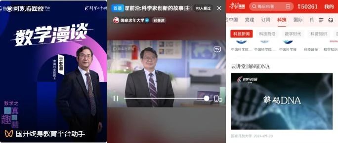 院士讲堂在国家开放大学哔哩哔哩官方账号、国开终身教育平台官网、国开终身教育平台视频号、国家老年大学抖音官方账号、学习强国、央视频、未来科技官方微博等多平台同步直播,并由终身教育平台、学习强国等提供回放点播。活动掀起了社会大众广泛参与的热情,超200万人通过直播实时观看学习,活动总覆盖人数达500万人。