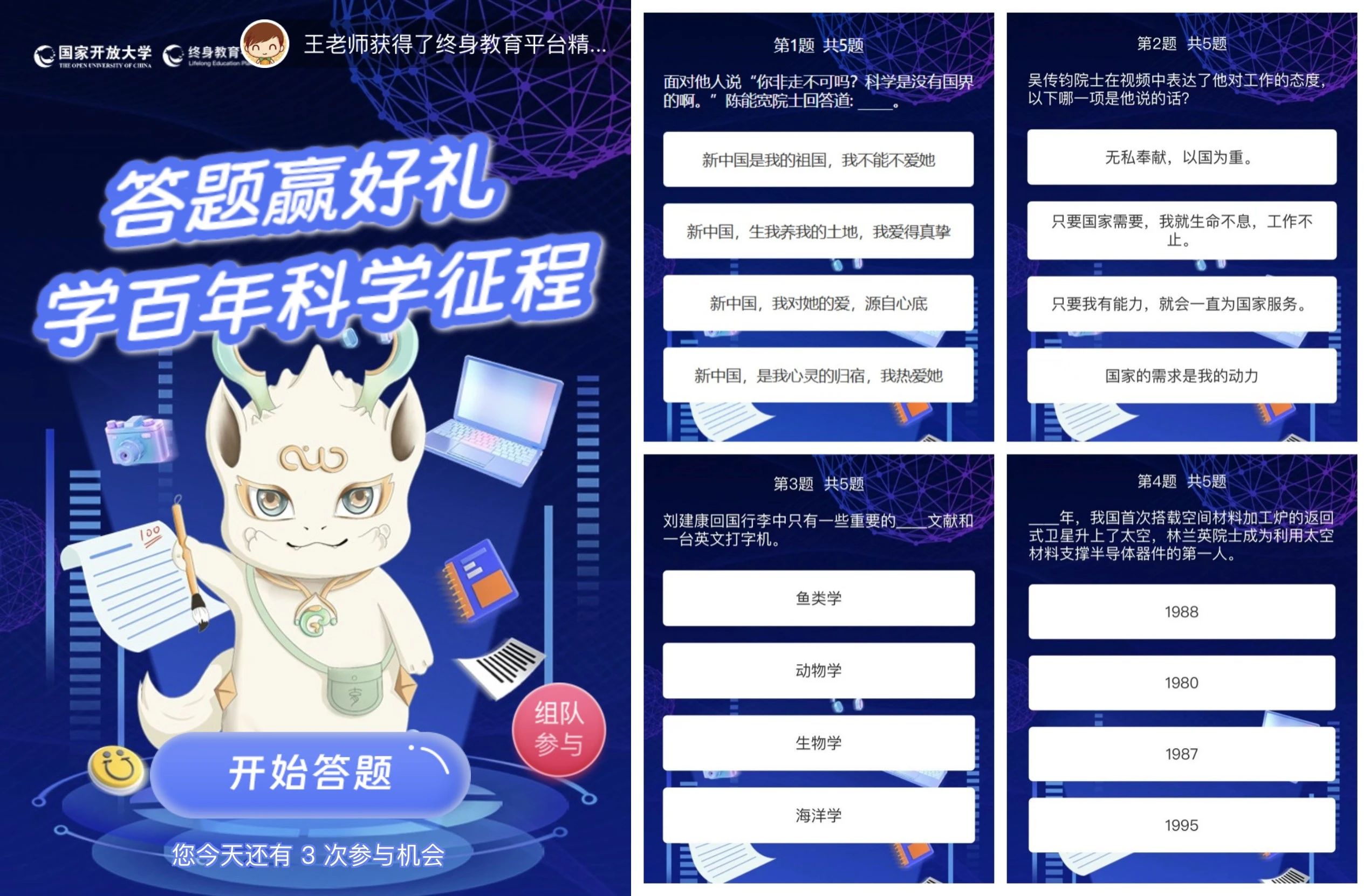 为进一步激发公众对《科学人生 百年征程》系列短视频学习热情,科普日期间,学校还推出了线上答题活动,参与者可通过观看系列短视频参与每日答题挑战,以加深对科学知识的了解。此次活动上线后,不仅得到大众的积极响应,还通过寓教于乐的方式有效增强了大众的科学知识素养,共有3万人次参与答题。