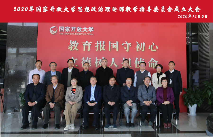 2020年12月5日,国家开放大学思想政治理论课建设研讨会暨教学指导委员会成立大会在京召开,来自普通高校、党校和科研院所等十多个单位的15位思政专家参加会议,为国家开放大学思政课建设出谋划策。国家开放大学党委书记、校长荆德刚,党委常务副书记曹国永,党委副书记兼马克思主义学院院长刘臣出席会议,学校相关部门负责人以及马克思主义学院全体教师列席会议。会议由曹国永和刘臣分别主持。