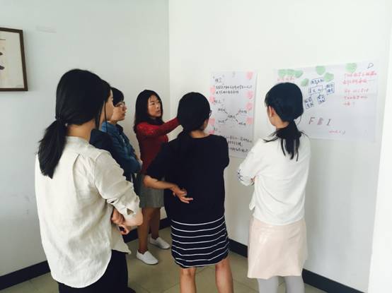 “个性化教学”主题部分,催化师使用“外交大使”式分享来组织讨论,先为学员们提供了个性化教学的参考文献,每组的全体成员都准备同样的内容,然后作为本组的外交大使,将内容传递给其他各组,经过几轮分享,学员对个性化教学的概念和定义、个性化教学的组织形式、个性化教学的设计原则及步骤、个性化教学的重难点、个性化教学对教师能力的要求等内容有了清晰的认识和理解。