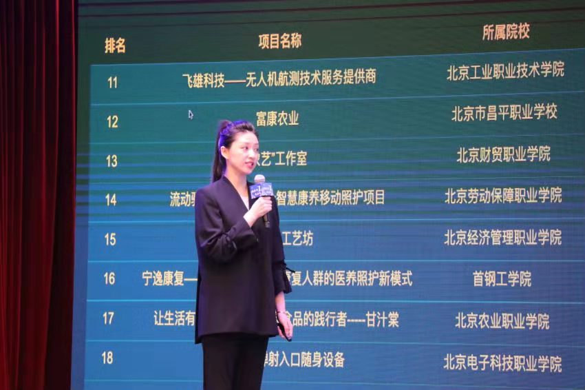 据了解,经过各校校级初赛选拔,本届大赛共有来自北京市32所职业院校选送的535个项目参加复赛,118支团队晋级决赛并现场路演。实验学院选送的24个项目全部获奖,其中19个项目晋级北京赛区总决赛。