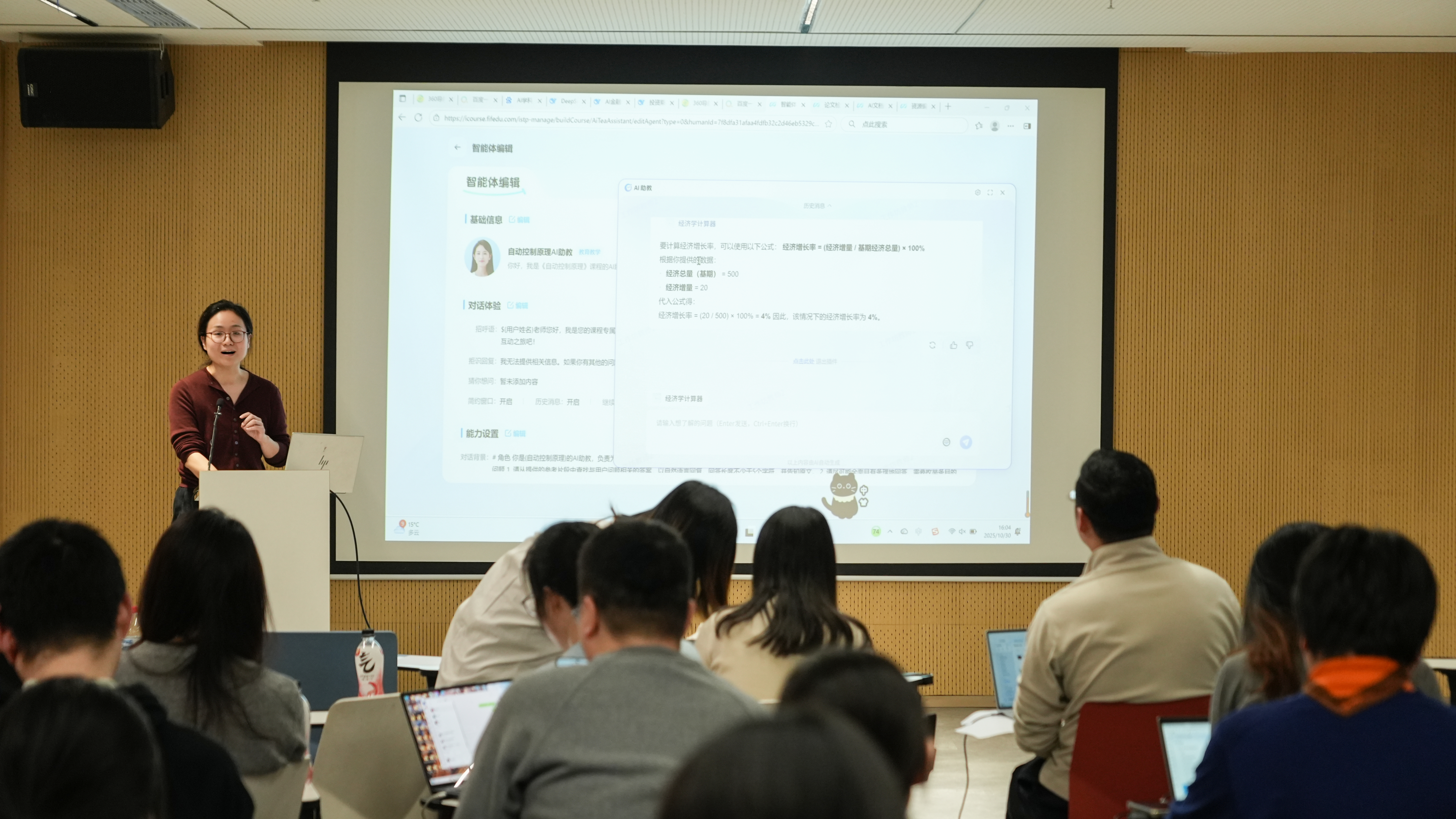 此次工作坊采用“主旨报告+场景体验+实战演练”三位一体设计模式,由科大讯飞高教智慧课程建设和成效运营负责人赵爱红、科大讯飞AI课程建设顾问张维玮担任主讲。工作坊帮助教师在真实的教学场景和任务中发现问题、解决问题,体验基于生成式人工智能的资源开发过程与方法,现场形成一批可直接用于开放教育教学的高质量智能资源。