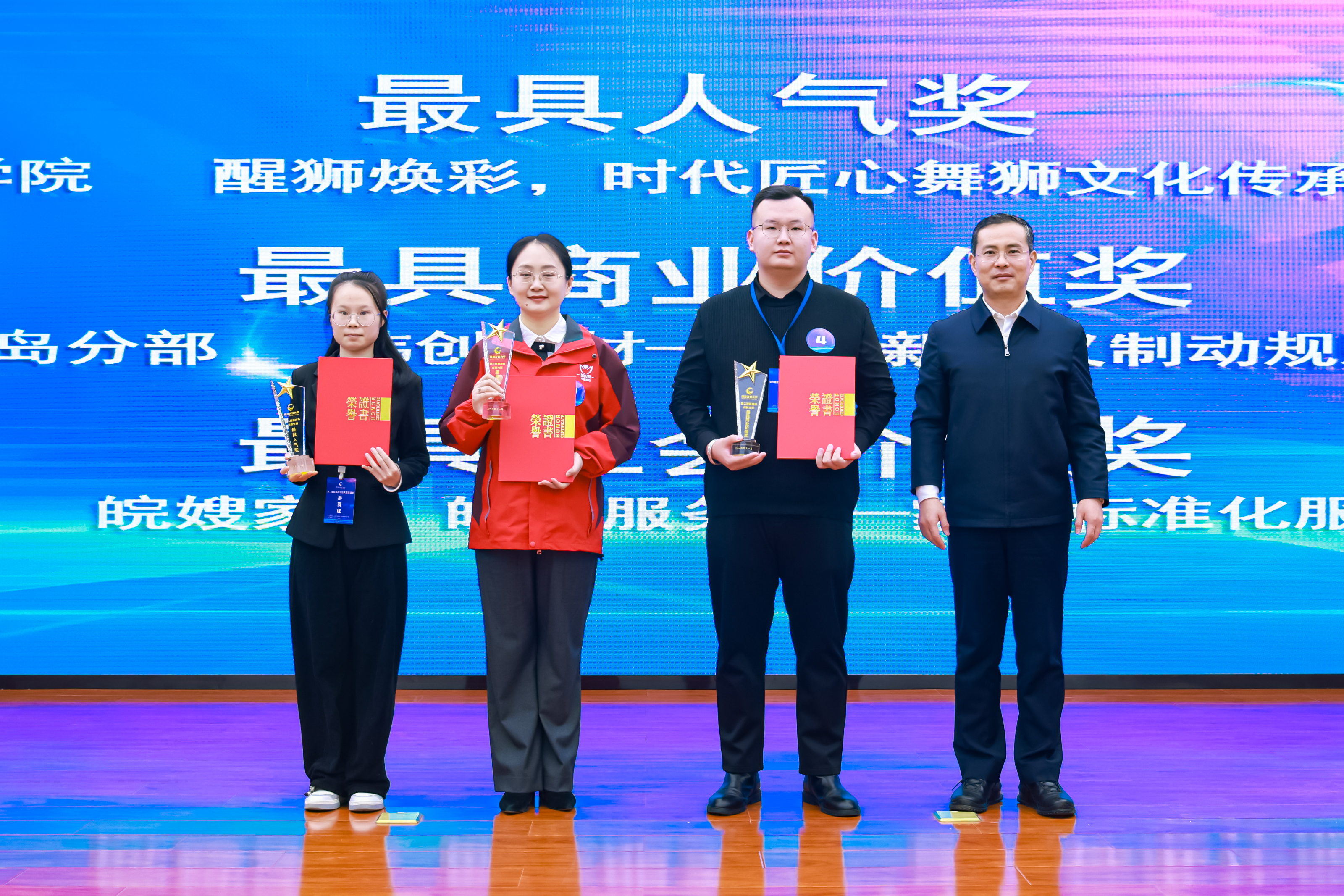 经过激烈角逐,本届共有19支队伍进入现场赛。现场赛包含半决赛、决赛两个环节,评审专家从个人成长、项目创新、产业价值、团队合作及现场表现等5个方面对参赛作品进行评分。最终,来自武汉分部的作品获得冠军,来自青岛分部、安徽分部的作品获得亚军,来自山东分部、青岛分部、安徽分部、浙江分部、国家开放大学实验学院、长春分部的作品获得季军。大赛还评出了最具人气奖、最具商业价值奖和最具社会价值奖等奖项。