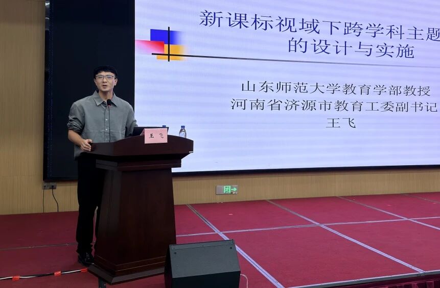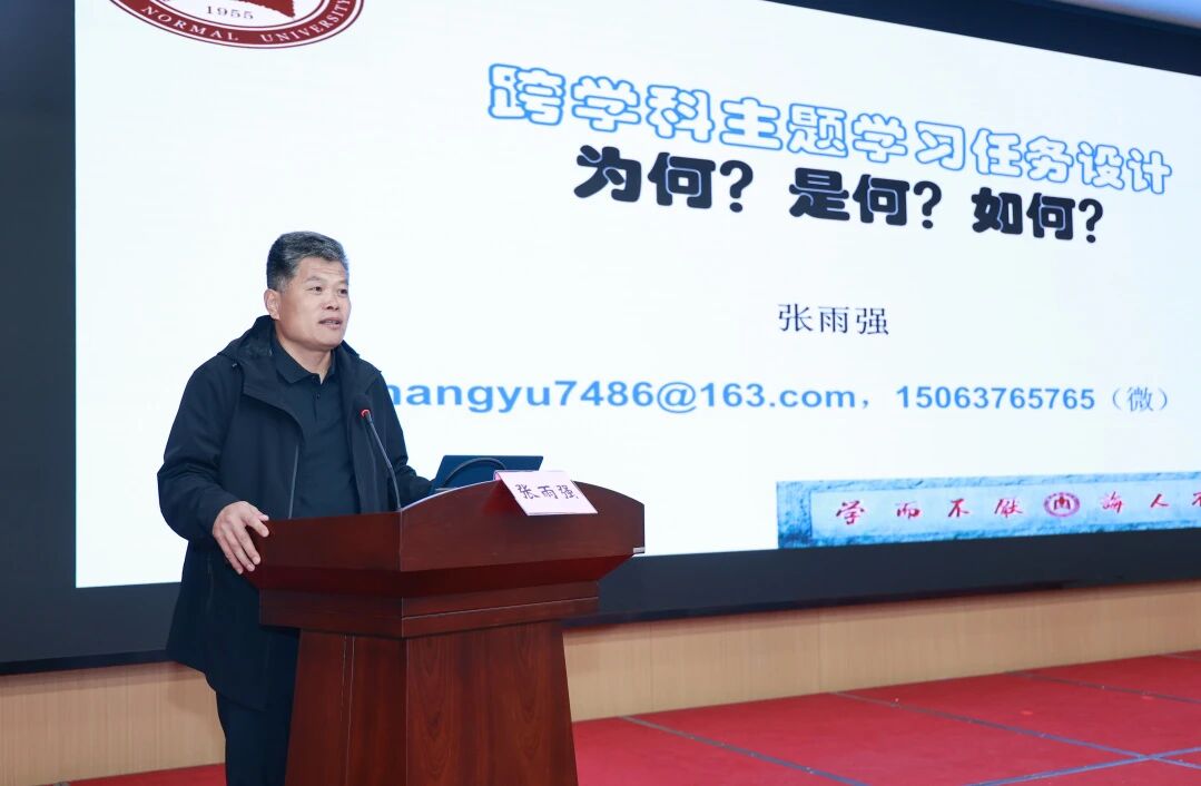 山东师范大学教授王飞、曲阜师范大学教授张雨强围绕跨学科主题学习、新课标视域下跨学科主题学习的设计与实施作专题报告。报告涵盖跨学科教学的内涵、特征、设计与实施路径等内容,并通过国内外案例对跨学科教学进行了充分解读,深化了办学体系教师对跨学科教学的理解与认识。