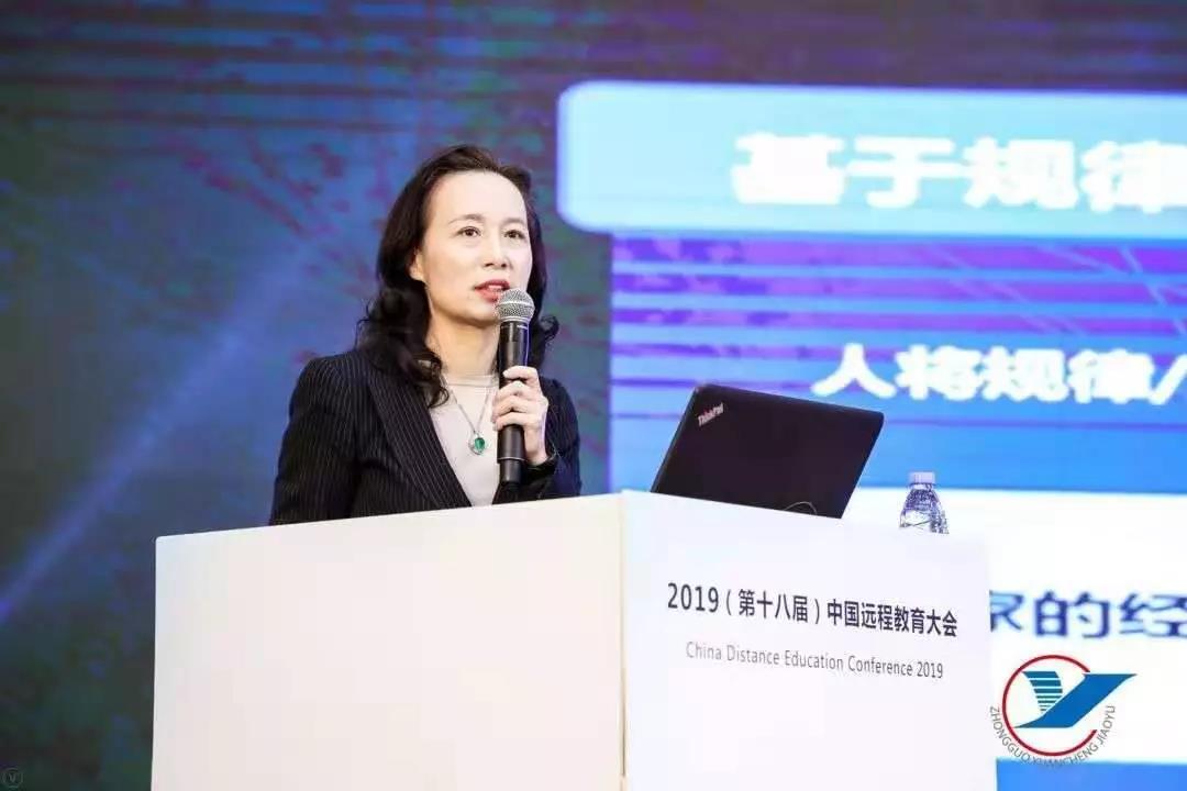 中国成人教育协会副会长、奥鹏教育常务副主任赵敏作《5G+AI时代,继续教育质量提升工程的伟大变革——金文凭计划》主题演讲