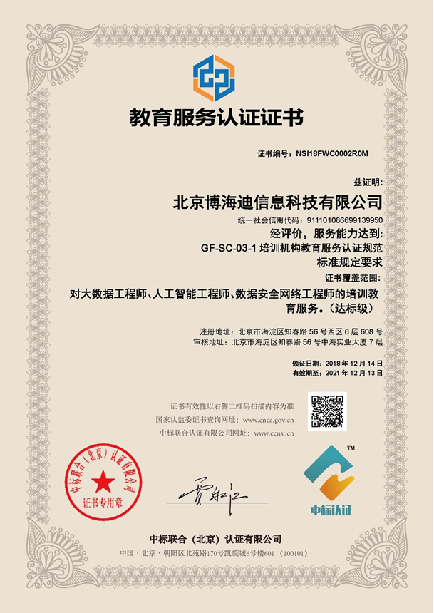 2018年12月11-12日,受国家开放大学学分银行委托,中标联合(北京)认证有限公司对泰克教育(北京博海迪信息科技有限公司)(以下简称“泰克教育”)实施了教育培训服务认证现场评审。泰克教育是第一家按照《培训机构教育服务认证规范》进行服务认证,申请加入学习成果互认联盟,成为国开学分银行合作伙伴的教育培训机构。经过两天现场审查,泰克教育顺利达标,通过了认证,获得了国开学分银行定制的第一张教育服务认证证书。