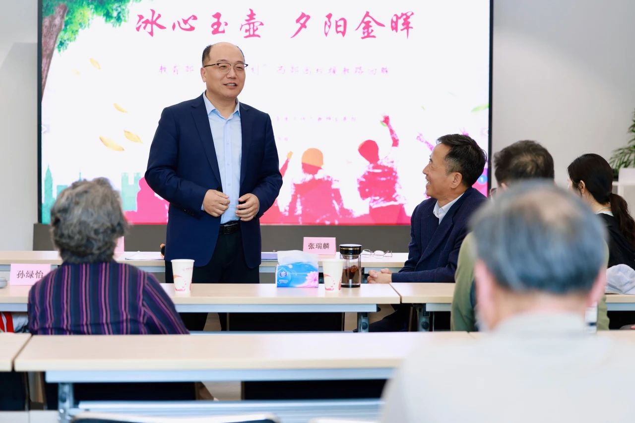 徐明军总结发言。他高度肯定了张瑞麟教授的援教工作,并指出,张瑞麟教授坚守教育初心,退休后积极响应党和国家号召,主动投身高校银龄教师支援西部计划,用丰富的专业知识和教学经验照亮边疆学子的成才之路,事迹感人。徐明军号召离退休教职工,深入学习贯彻习近平总书记给“银龄行动”老年志愿者代表的回信精神,充分发挥自身政治优势、专业优势、经验优势,在服务教育强国建设的广阔舞台上继续书写“银龄有为”的育人篇章。他鼓励年轻教师要以银龄教师为榜样,传承和发扬老一辈教育工作者坚守初心、无私奉献的精神品格,抓住国家开放大学难得的历史机遇,勇立教育改革潮头,主动担当作为,为学校事业高质量发展,为教育强国建设贡献青春力量。