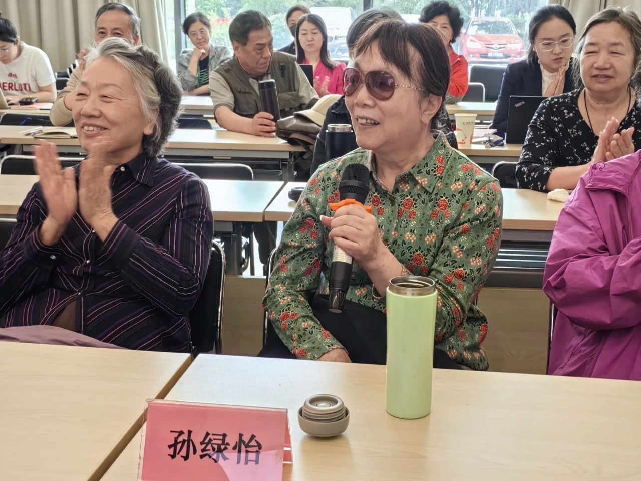 交流环节中,现场气氛热烈,退休教师代表、在职教师代表纷纷发言,分享各自感悟。退休教师代表向张瑞麟教授致以崇高的敬意:“张教授在边疆忍受着干燥气候与风沙天气,把一堂堂饱含文化温度的课程送到学生心里,这让我们这些老一辈教育工作者既心疼又骄傲。他用行动证明,教育者的初心永远不会因年龄而褪色。”在职教师代表语气坚定地表示:“张教授为我们年轻教师树立了榜样,他以实际行动诠释了教育家精神,是我们学习的楷模。他以渊博的学识和赤诚之心,坚守教育初心,这份执着与担当,将激励我们砥砺前行。”现场掌声经久不息,两代教育工作者在敬意与承诺中,完成了一次精神传承。