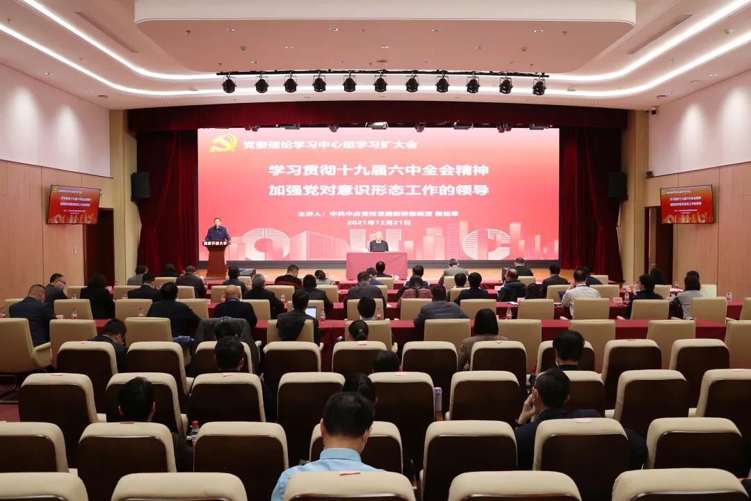 12月21日下午,国家开放大学召开党委理论学习中心组学习扩大会。会议邀请中共中央党校教授戴焰军以“学习贯彻党的十九届六中全会精神,加强党对意识形态工作的领导”为主题做专题辅导报告。