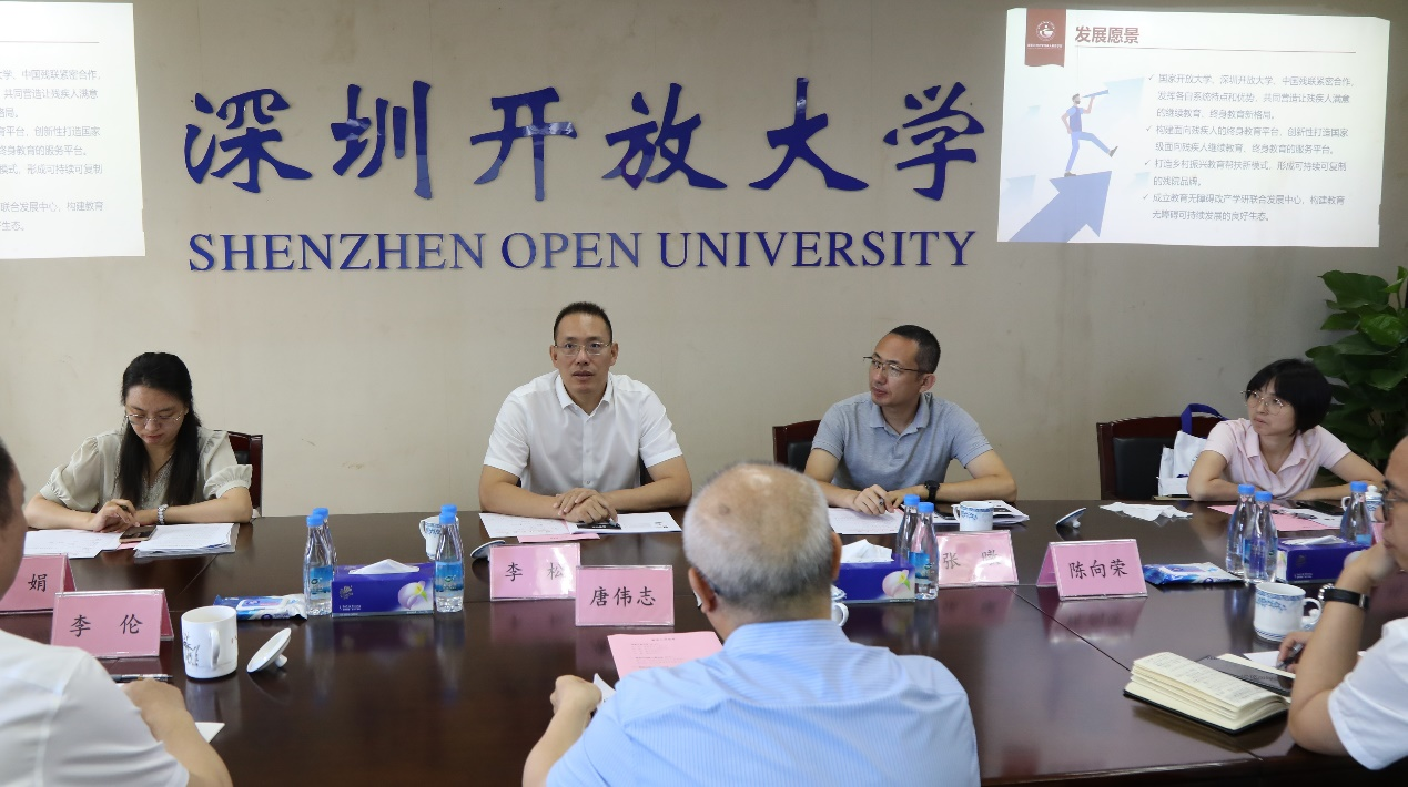 为全面贯彻落实党的二十大精神,积极落实党和国家对残疾人教育事业发展的有关工作要求,9月21日,国家开放大学党委委员、副校长李松一行赴残疾人教育学院开展实地调研。深圳市残疾人联合会党组成员、副理事长李伦,深圳开放大学党委委员、副校长唐伟志参加调研座谈。