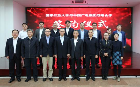 2021年10月14日,在重阳节之际,国家开放大学与中国广播电视网络集团有限公司战略合作签约仪式在北京举行。双方将围绕贯彻落实积极应对人口老龄化国家战略精神,利用各自组织体系和传播渠道,在老年教育与服务、资源建设与服务、品牌宣传与人才培养、广电5G应用等方面开展深层次合作,共同服务国家老龄事业发展,满足公众精神文化生活需求。国家开放大学党委副书记刘臣、中国广播电视网络集团有限公司总经理梁晓涛、辽宁开放大学党委书记伊焕斌、中国广电辽宁公司总经理曾绍武出席签约仪式。