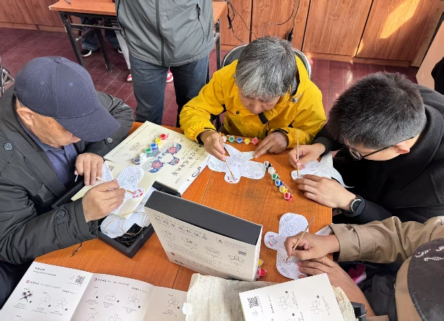 活动分为两组进行。在大兴社区党群服务中心,非遗传承组的青年们与社区老人结成对子,在导师带领下进行“慧龄游戏”,通过“文化课堂+手工体验”的模式,了解中国纸鸢的历史脉络与文化内涵,并开展问答互动,沉浸式体验纸鸢制作。活动既丰富了社区老年朋友们的精神生活,又推动了非遗文化的传播和继承。