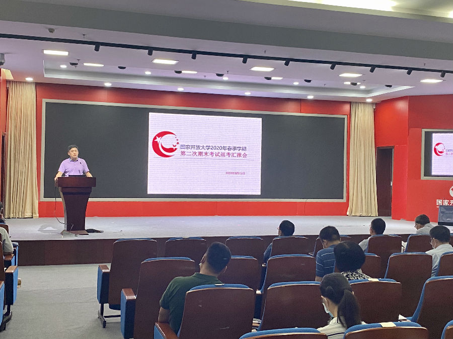 9月15日,国家开放大学总部召开2020年春季学期第二次期末考试巡考汇报会,校领导、中层干部、巡考人员及考务工作人员等约110人参加会议。