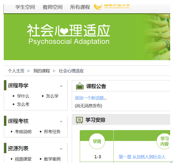 国家开放大学开设老年服务与管理专业(专科)以来,积极开展资源建设,目前已形成一整套文字教材、一部分录像教材和网络课程以及一批微课。